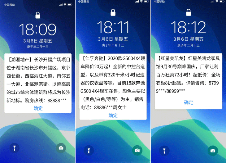 閃信群發,高到達率,高閱讀率,低攔截率,閃信彈屏、直接閱讀,短信內容不留存手機,精準推送,無攔截無打擾、閱后即焚。